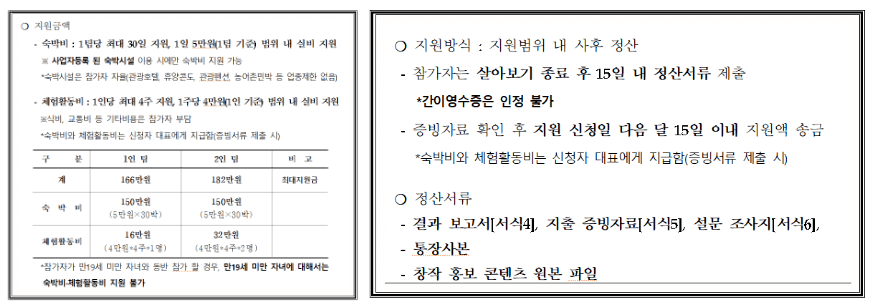 1인이라면 숙박비가 최대 150만원/ 체험활동비는 16만원