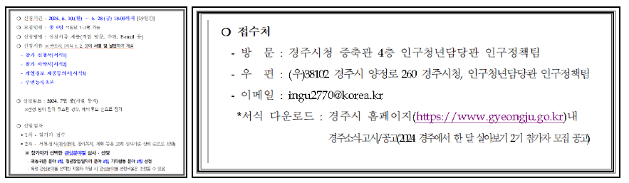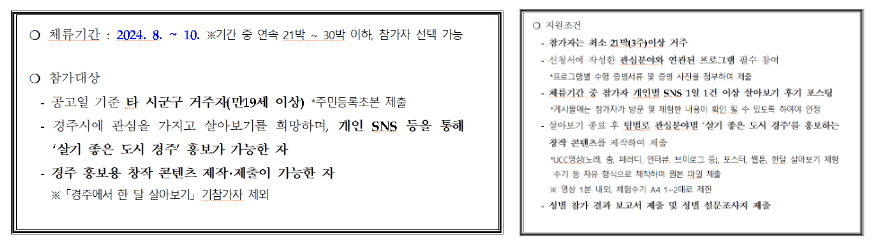 - 경주시에 관심을 가지고 살아보기 희망하며, 개인 SNS를 통해 '살기 좋은 도시 경주'홍보가 가능한 자