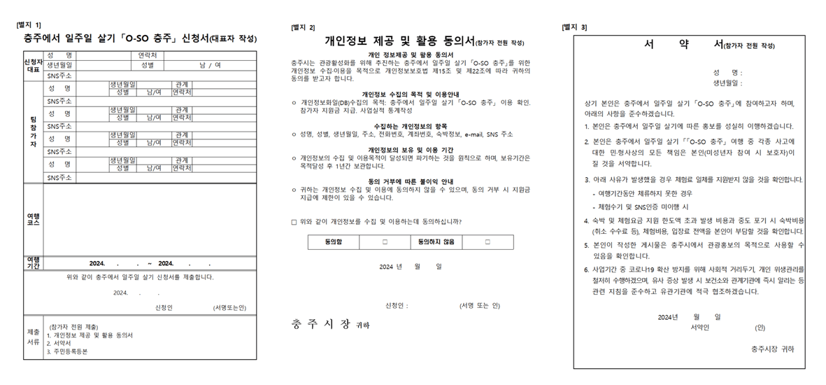 1) 충주에서 일주일 살기 신청서 (별지1)