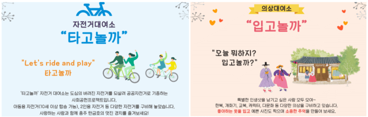 참고로, 충주시에서 다양한 볼거리가 있으며 대표적으로 많은 팀들이 체험한 대표 사례로 자전거대여 및 의상대여를 진행했다고 합니다.