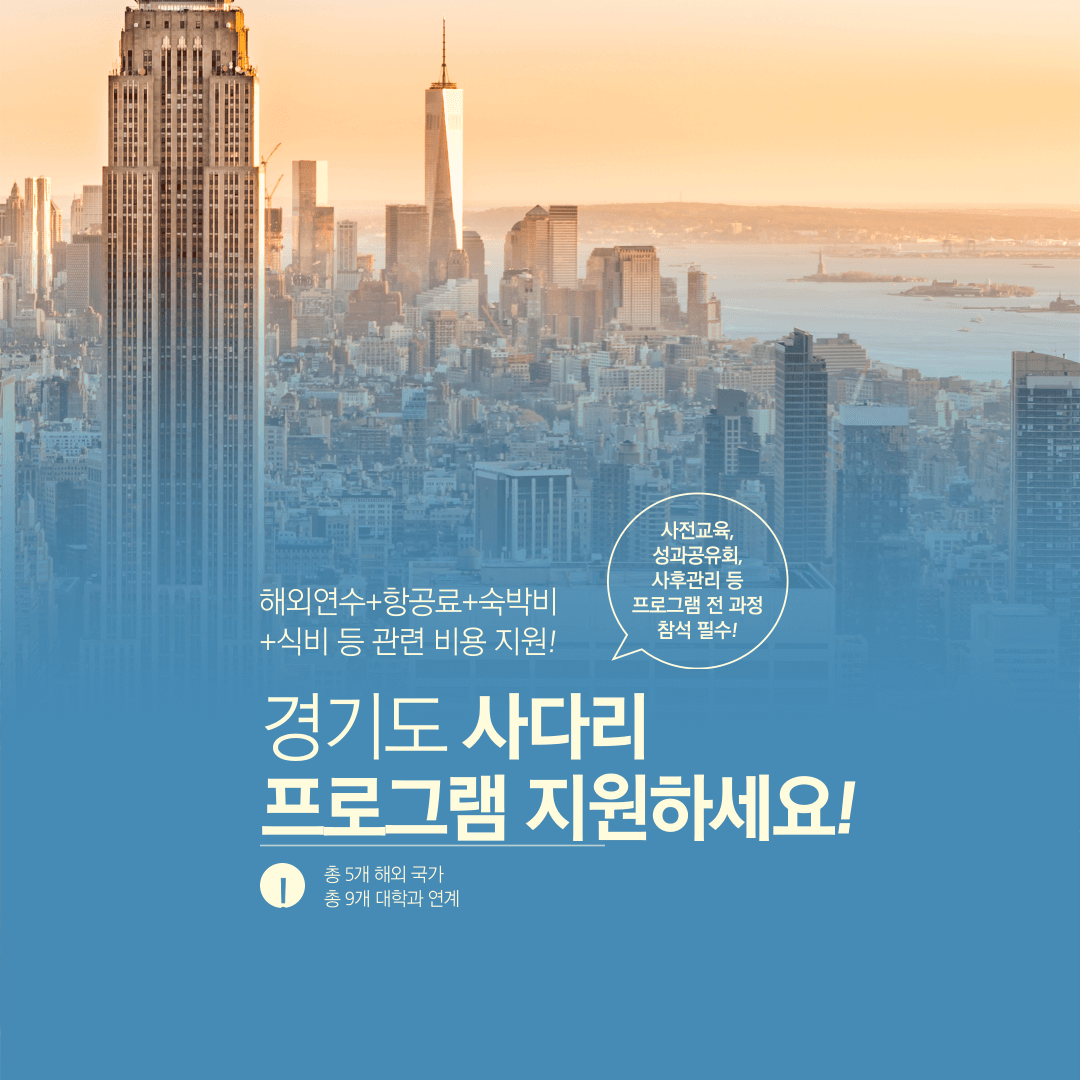 경기도에서 청년 대상으로 해외대학 연수를 지원해 주는 사다리 프로그램 사업을 추진한다고 합니다.
