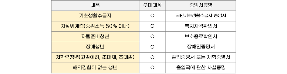 - (우대 대상자일 경우) 우대 대상 증빙서류