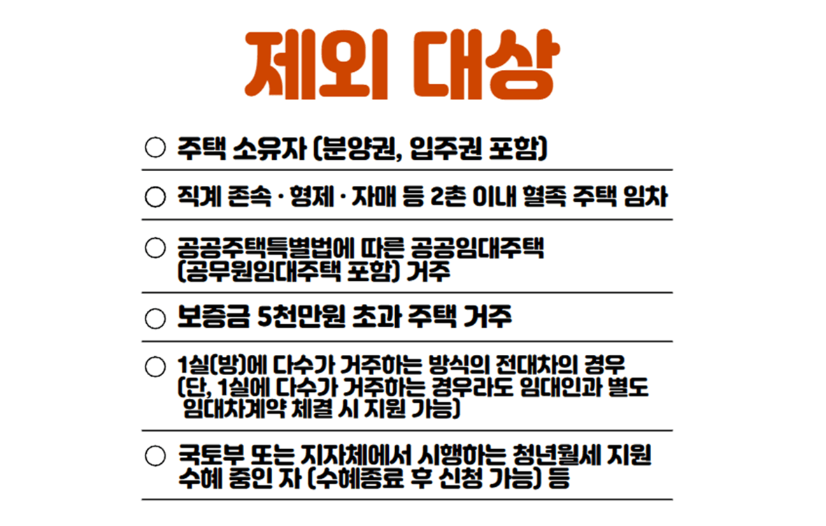 청년월세 지원금 관련 제외 대상에 대한 안내가 별도로 있어서 공유드립니다.