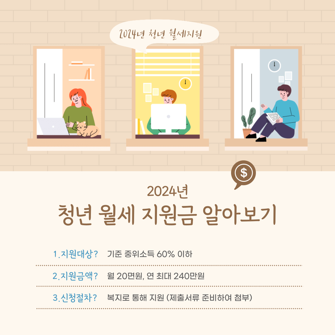 2024년에도 지원을 지속하기로 했으며 임대료 최대 240만원까지 12개월 동안 월 20만원 지원하겠다고 발표했습니다.